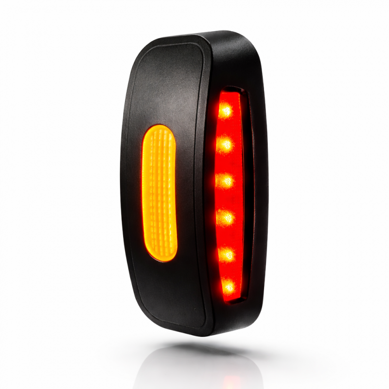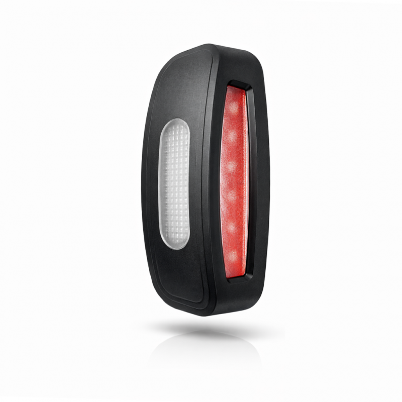 Luz de gálibo LED de 3 funciones diseñada para vehículos industriales, remolques, camiones y maquinaria. Ofrece luz blanca, ámbar y roja en un solo piloto, cumpliendo con la normativa europea vigente. Gracias a su tecnología LED SMD, garantiza bajo consumo energético, alta visibilidad y larga vida útil.