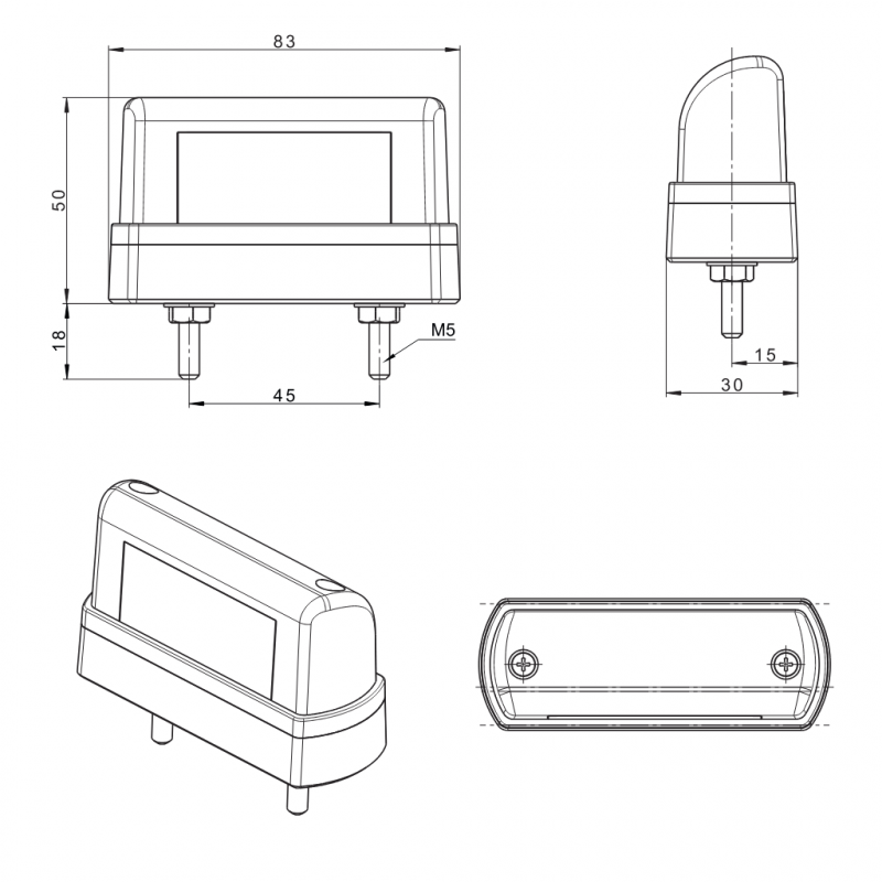 La luz LED de matrícula FRISTOM FT-016/1/A LED combina iluminación de matrícula y luz de posición trasera roja en un solo piloto compacto y resistente, diseñado para vehículos industriales, remolques y maquinaria.