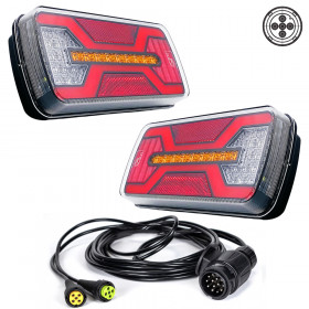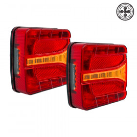 NOMBRE: PILOTOS TRASEROS CON CABLEADOPILOTO IZQUIERDO: POSICIÓN, FRENO, INTERMITENTE, ANTINIEBLA, REFLECTOR CATADIÓPTRICO, LUZ PARA MATRÍCULA LATERALPILOTO DERECHO: POSICIÓN, FRENO, INTERMITENTE, MARCHA ATRÁS, REFLECTOR CATADIÓPTRICO, LUZ PARA MATRÍCULA LATERALMARCA: K.M.RVOLTAJE: 12V 24VHOMOLOGACIÓN: E9 22559 148R00 150R00 L A2 R1 S1 AR IBANCHO: 220MMALTO: 100MMGROSOR: 50MMDISTANCIA TORNILLOS: 150MM LONGITUD DE CABLE: DISPONIBLE EN 5,5M Y 7,5MTIPO DE CONECTOR: 5 PIN BAJONETPIÑA: 7 PINESCANTIDAD DE LED: 69PRUEBA IP:67MATERIAL: PMMA, ABS, PCGARANTÍA: 1 AÑO
