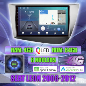 PANTALLA GPS SEAT LEON 2006-2012 9 PULGADAS CARPLAY ANDROID AUTO TS18 QLED