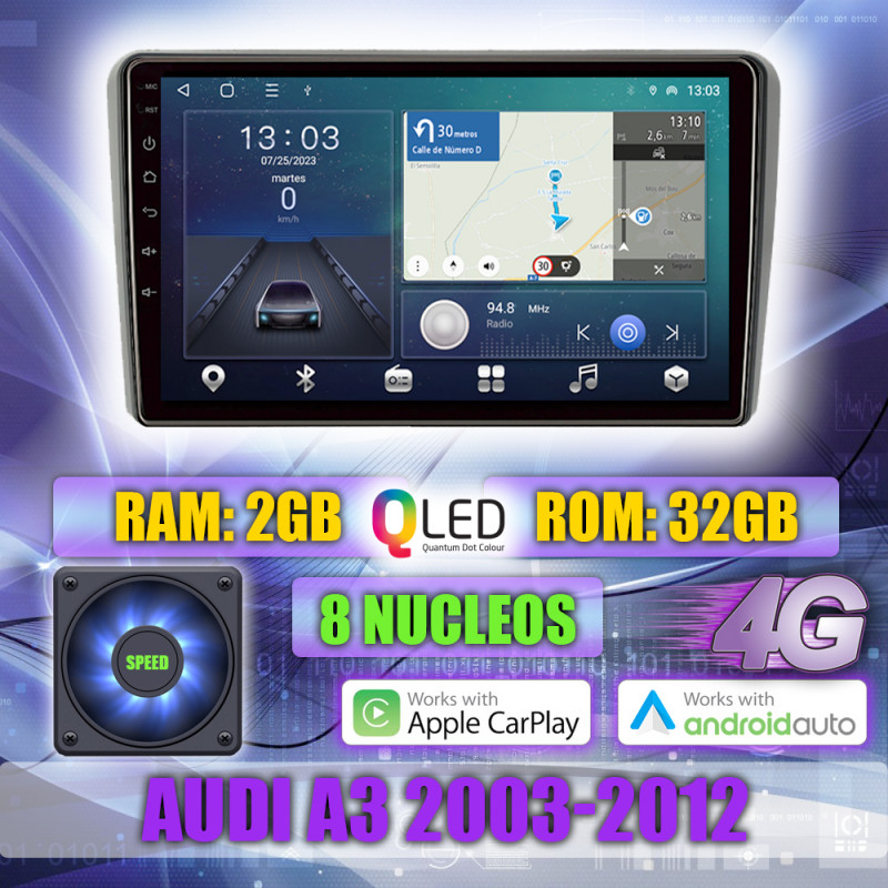 PANTALLA GPS AUDI A3 2003-2012 CARPLAY ANDROID AUTO TS18 QLED