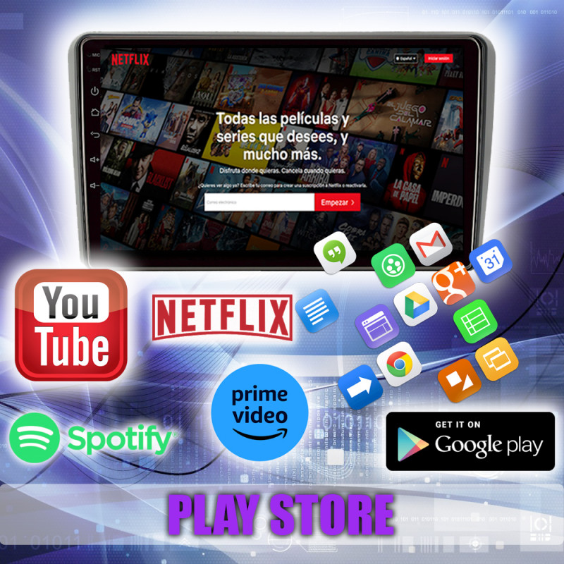 Google Play Store, YouTube, Netflix, Prime Video, TomTom, Spotify, YT Music, Google Maps, Facebook, entre muchas más.