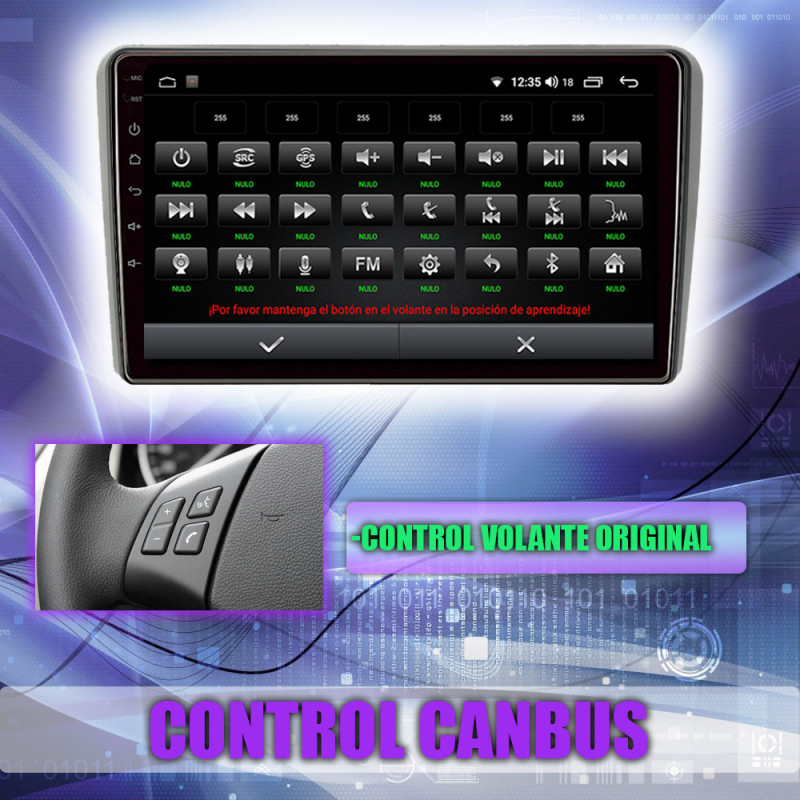 Soporta comunicación CANBUS, permitiendo controlar desde la pantalla los mandos del volante del Audi A3.