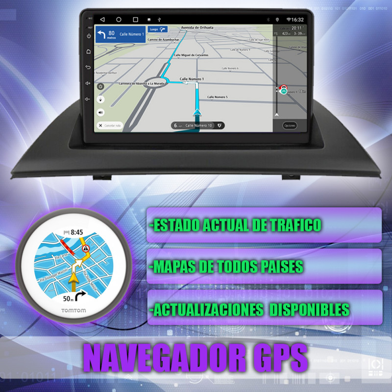 Memoria 2 GB de RAM y 32 GB de almacenamiento interno (ROM) para aplicaciones, mapas y contenido multimedia.