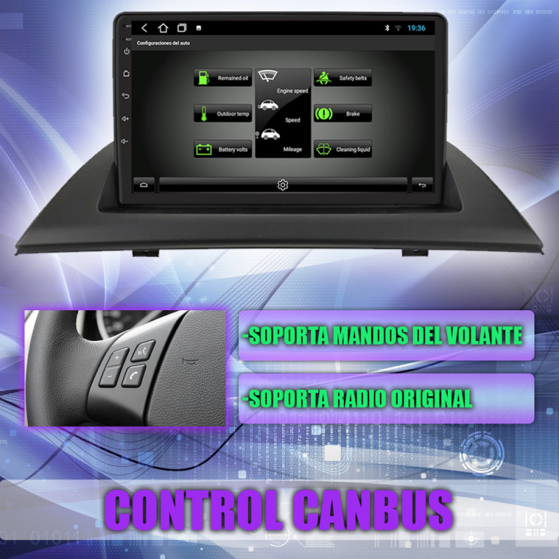 Soporta comunicación CANBUS, permitiendo controlar desde la pantalla los mandos del volante del BMW X3 E83.