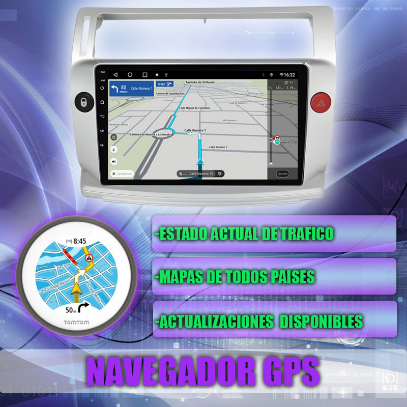 PANTALLA GPS CITROEN C4 2004-2009 9 PULGADAS CARPLAY ANDROIDAUTO TS18 QLED