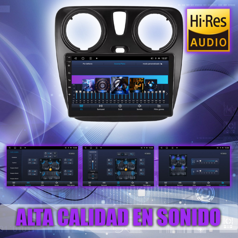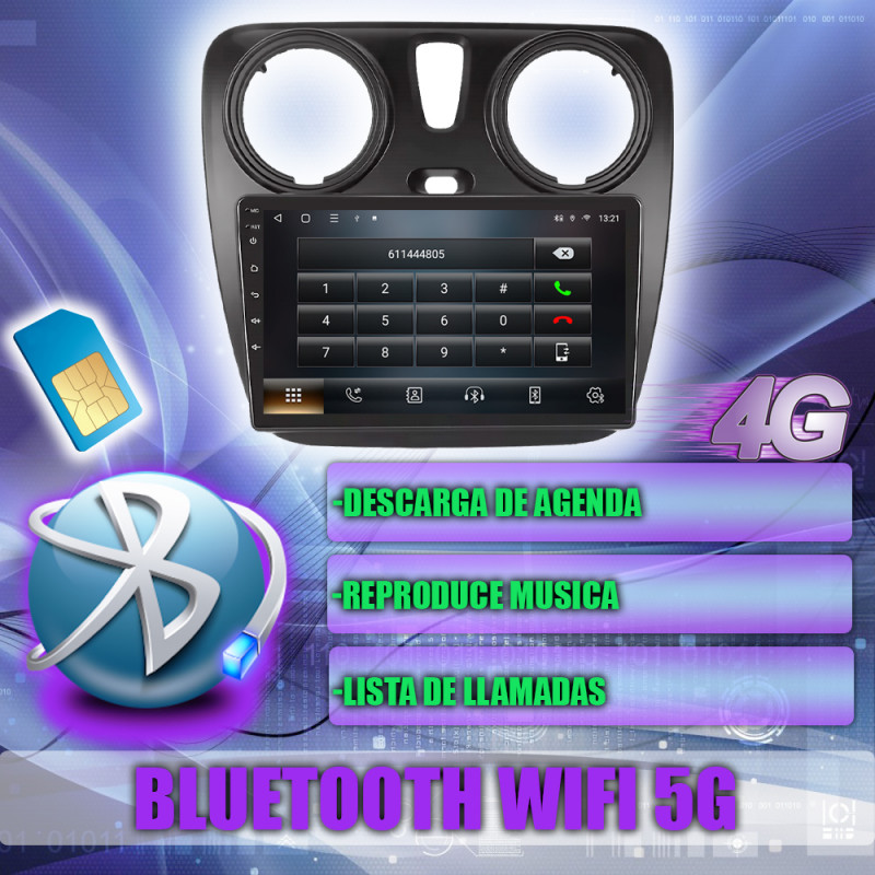 Soporta comunicación CANBUS, permitiendo controlar desde la pantalla los mandos del volante, sensores del coche y ajustes específicos del Dacia Lodgy Renault Dokker.
