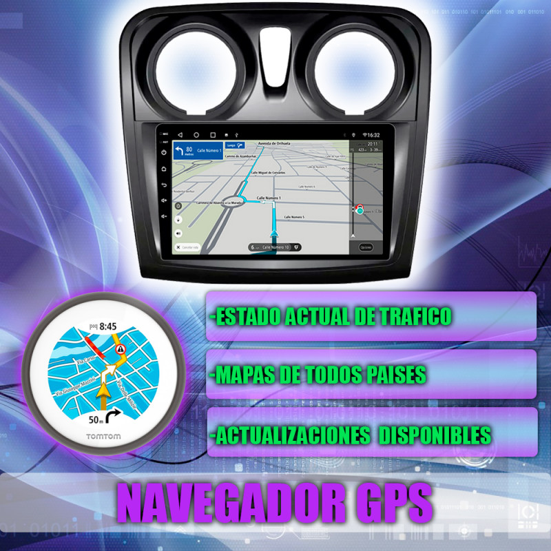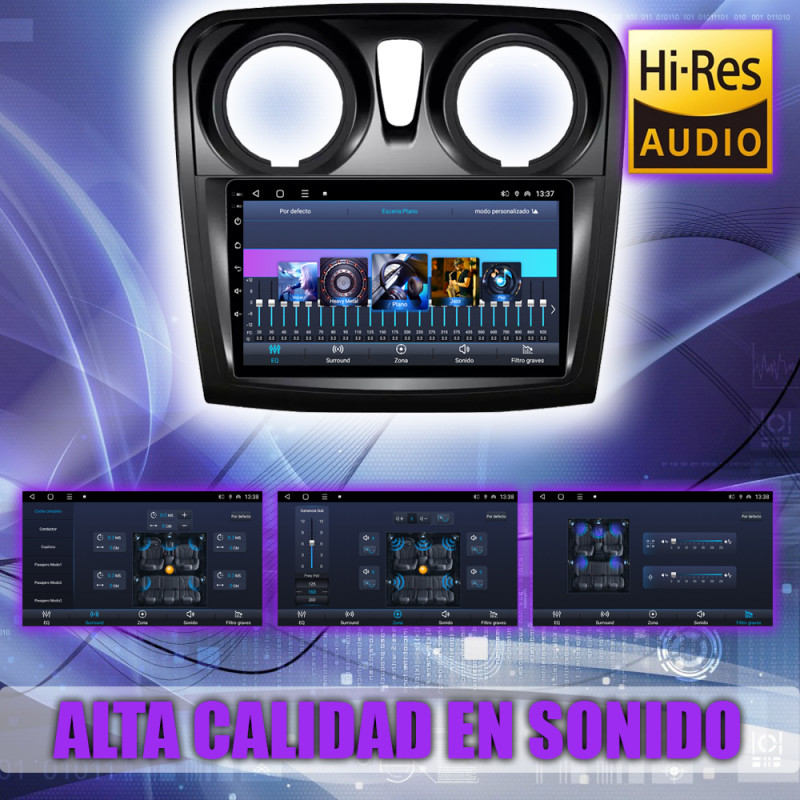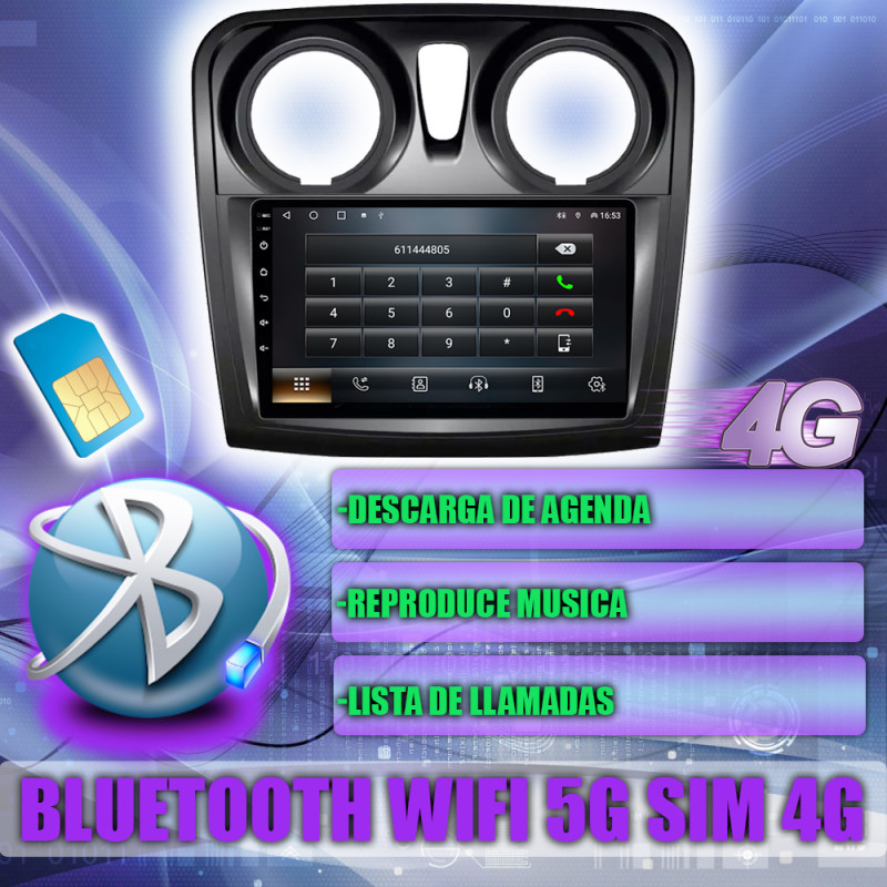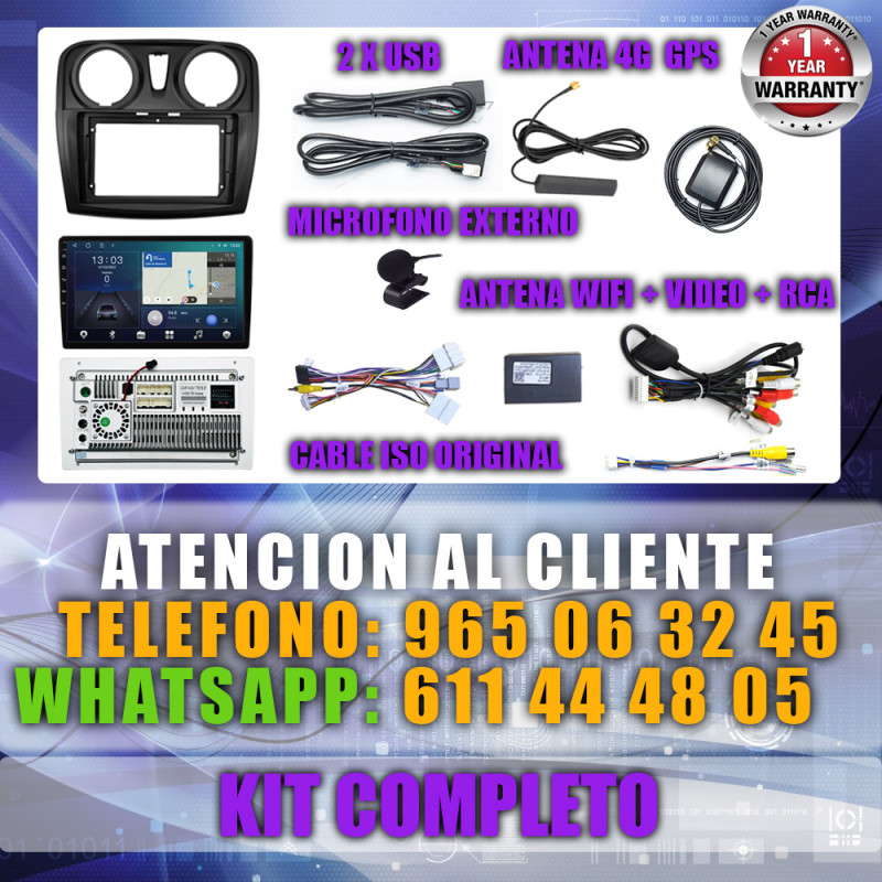 Soporta comunicación CANBUS, permitiendo controlar desde la pantalla los mandos del volante, sensores del coche y ajustes específicos del Dacia Sandero.