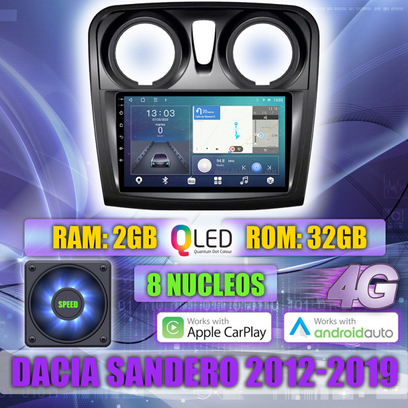 PANTALLA GPS DACIA SANDERO 2012-2019 CARPLAY ANDROID AUTO TS18 QLED