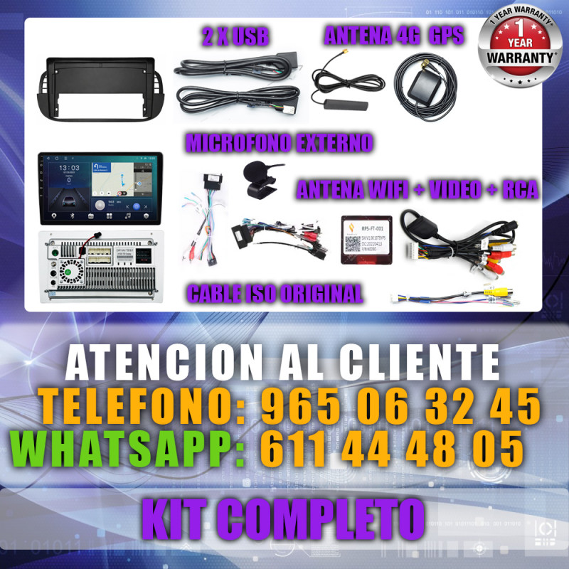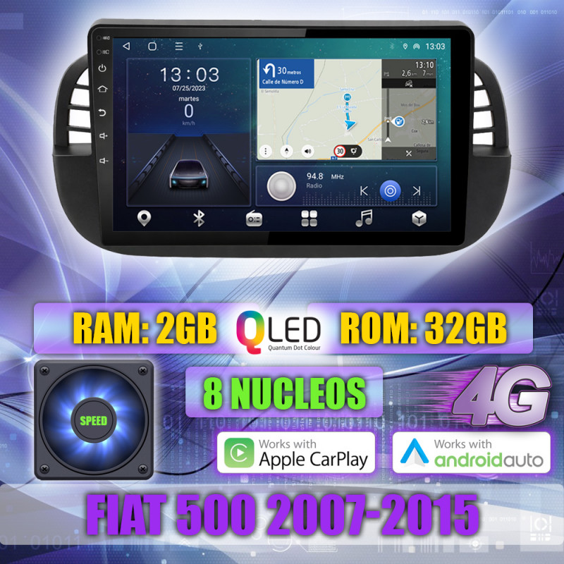 PANTALLA GPS FIAT 500 2007-2015 9 PULGADAS CARPLAY ANDROID AUTO TS18 QLED