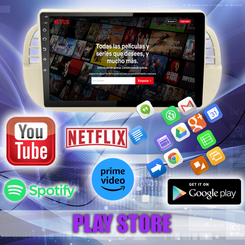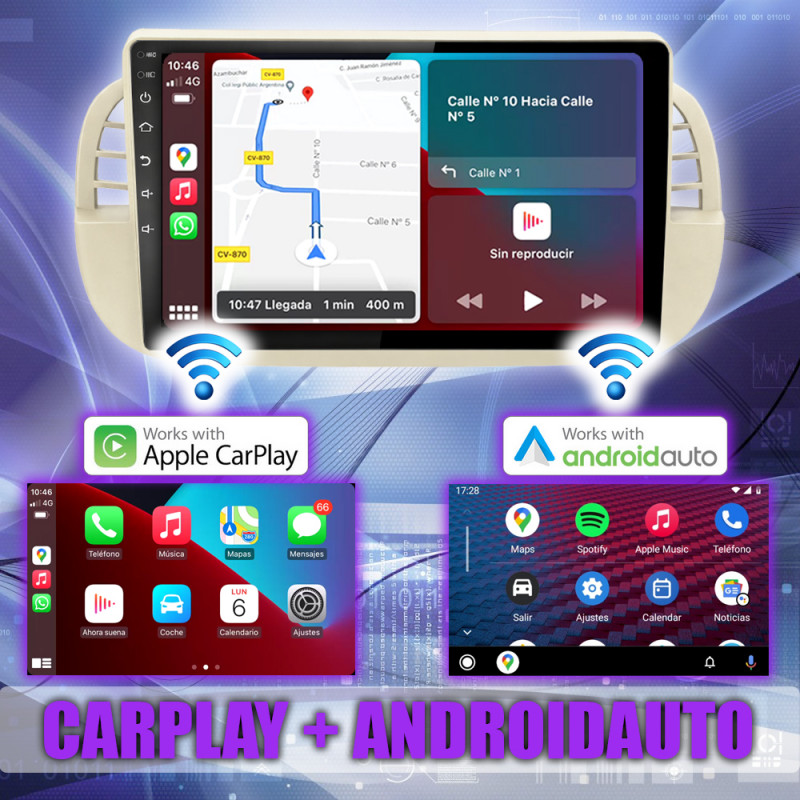 PANTALLA GPS FIAT 500 2007-2015 9 PULGADAS CARPLAY ANDROID AUTO TS18 QLED