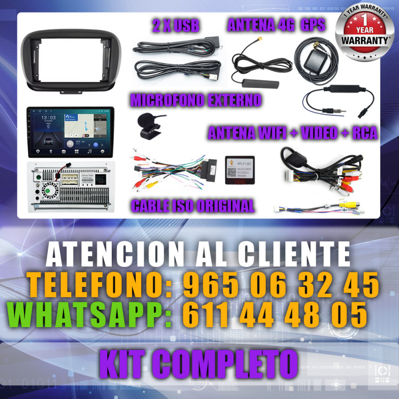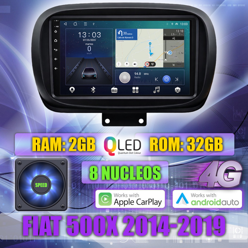PANTALLA GPS FIAT 500X 2014-2019 9 PULGADAS CARPLAY ANDROID AUTO TS18 QLED