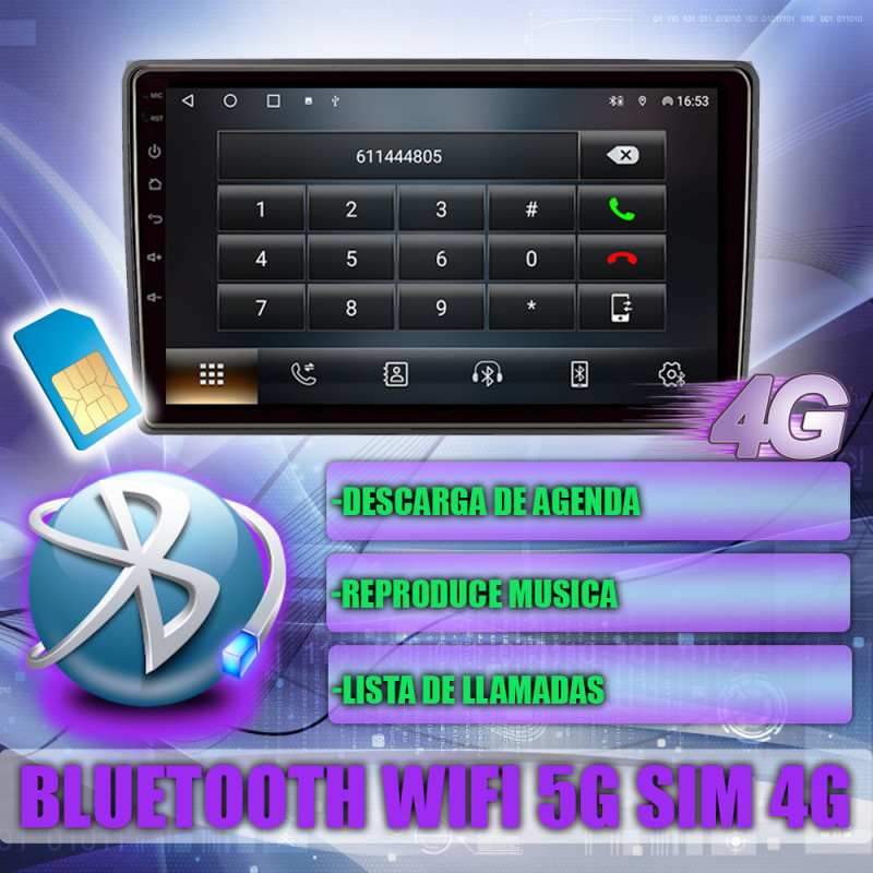 Soporte para tarjeta SIM 4G, permitiendo acceso a internet móvil directamente desde la unidad.
