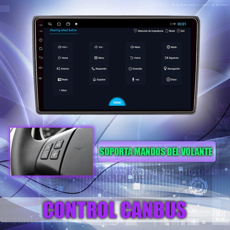 Soporta comunicación CANBUS, permitiendo controlar desde la pantalla los mandos del volante del Ford.
