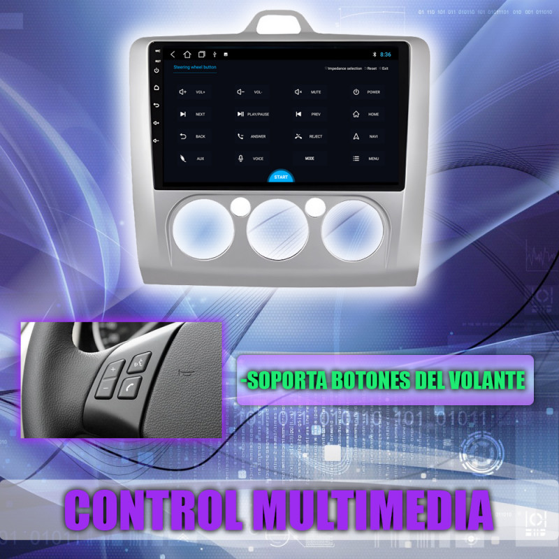 Soporta comunicación mandos del volante, permitiendo controlar desde la pantalla los mandos del volante del Ford Focus MK2.