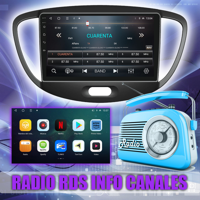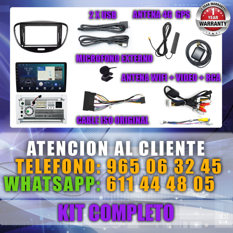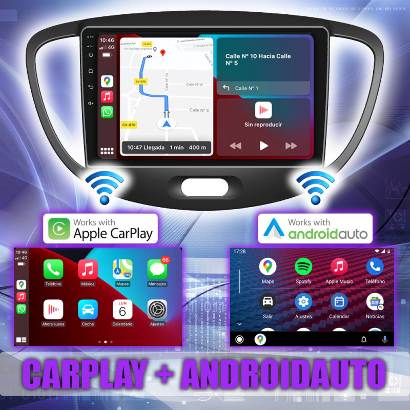 PANTALLA GPS HYUNDAI i10 2007-2013 9 PULGADAS CARPLAY ANDROID AUTO TS18 QLED
