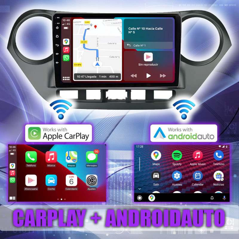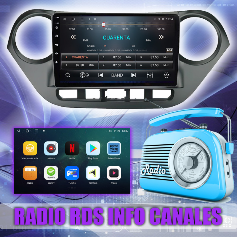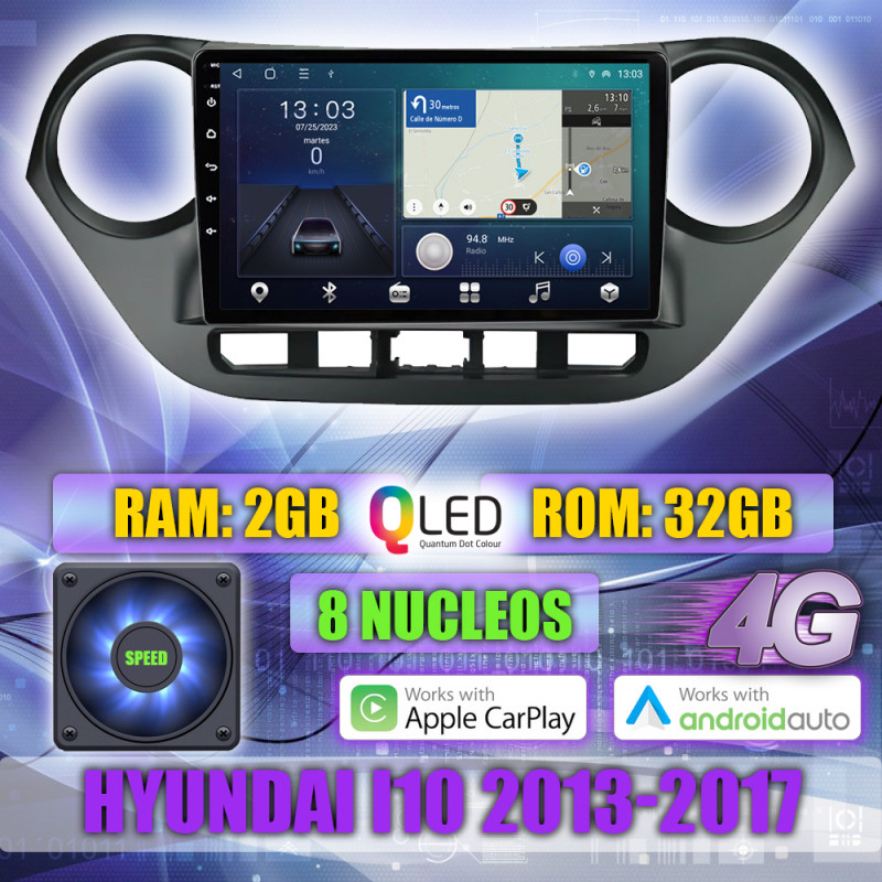PANTALLA GPS HYUNDAI i10 2013-2017 9 PULGADAS CARPLAY ANDROID AUTO TS18 QLED