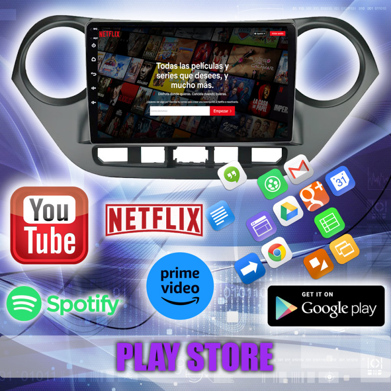 Google Play Store, YouTube, Netflix, Prime Video, TomTom, Spotify, YT Music, Google Maps, Facebook, entre muchas más.