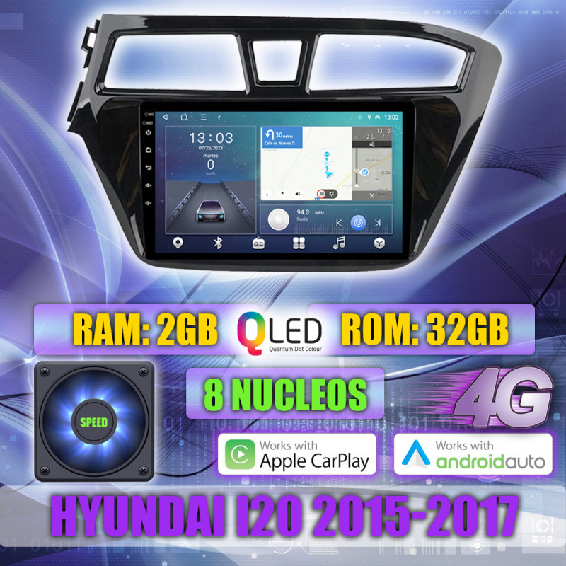 PANTALLA GPS HYUNDAI i20 2015-2017 9 PULGADAS CARPLAY ANDROID AUTO TS18 QLED