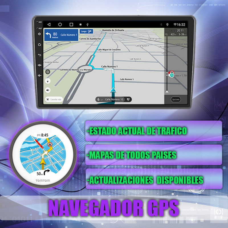 Memoria 2 GB de RAM y 32 GB de almacenamiento interno (ROM) para aplicaciones, mapas y contenido multimedia.