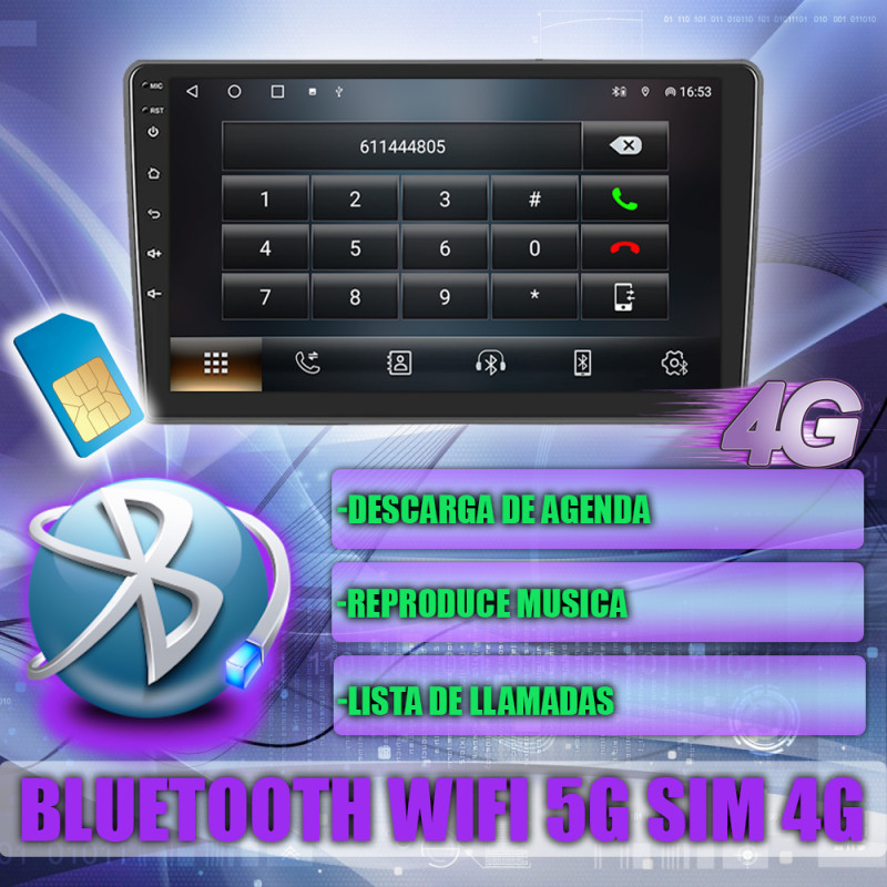 Soporte para tarjeta SIM 4G, permitiendo acceso a internet móvil directamente desde la unidad.
