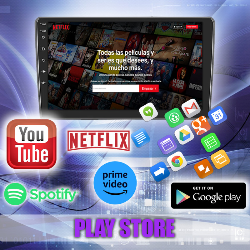Google Play Store, YouTube, Netflix, Prime Video, TomTom, Spotify, YT Music, Google Maps, Facebook, entre muchas más.