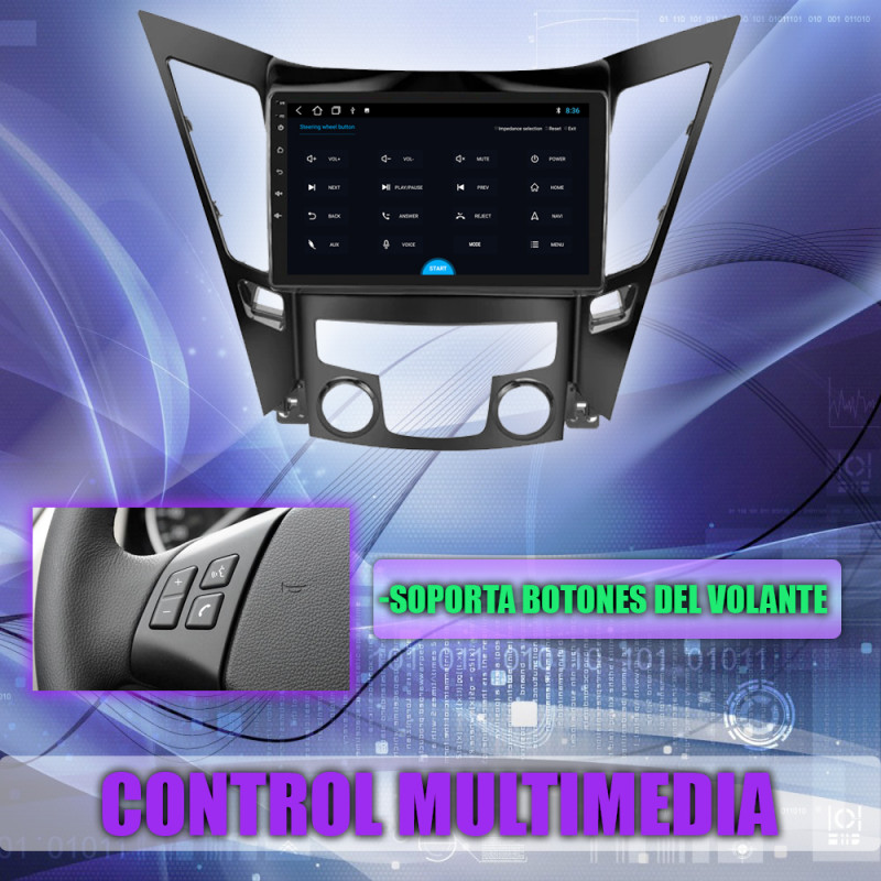 Soporta comunicación mandos del volante, permitiendo controlar desde la pantalla los mandos del volante del Hyundai Sonata.