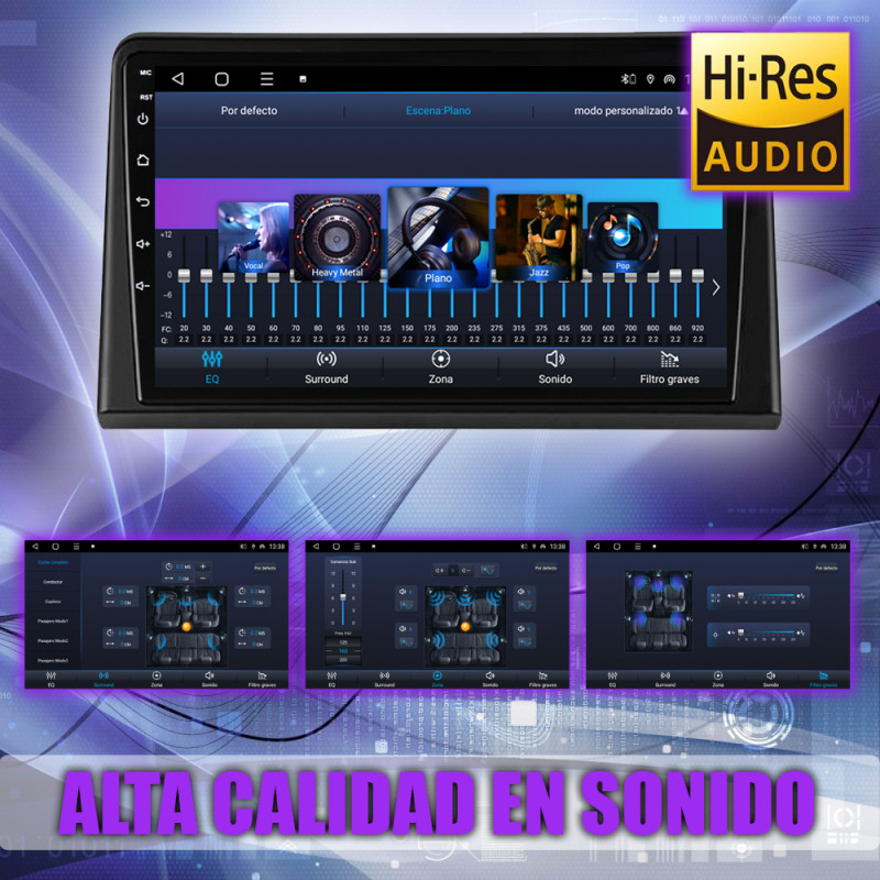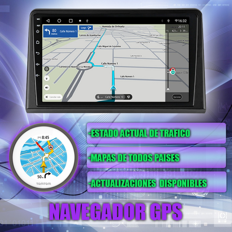 Memoria 2 GB de RAM y 32 GB de almacenamiento interno (ROM) para aplicaciones, mapas y contenido multimedia.