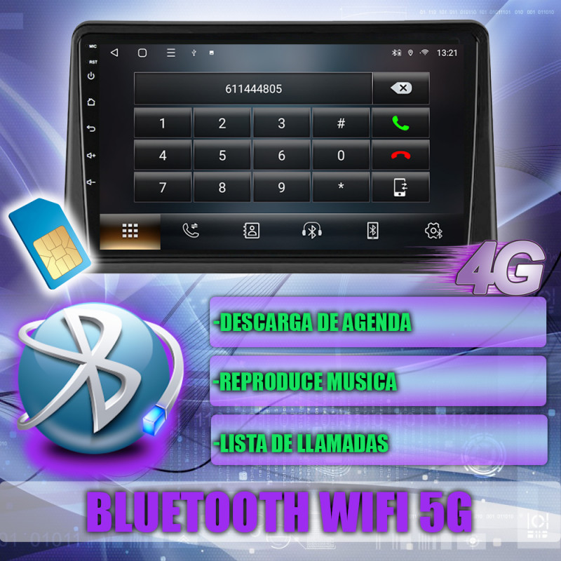 Soporte para tarjeta SIM 4G, permitiendo acceso a internet móvil directamente desde la unidad.