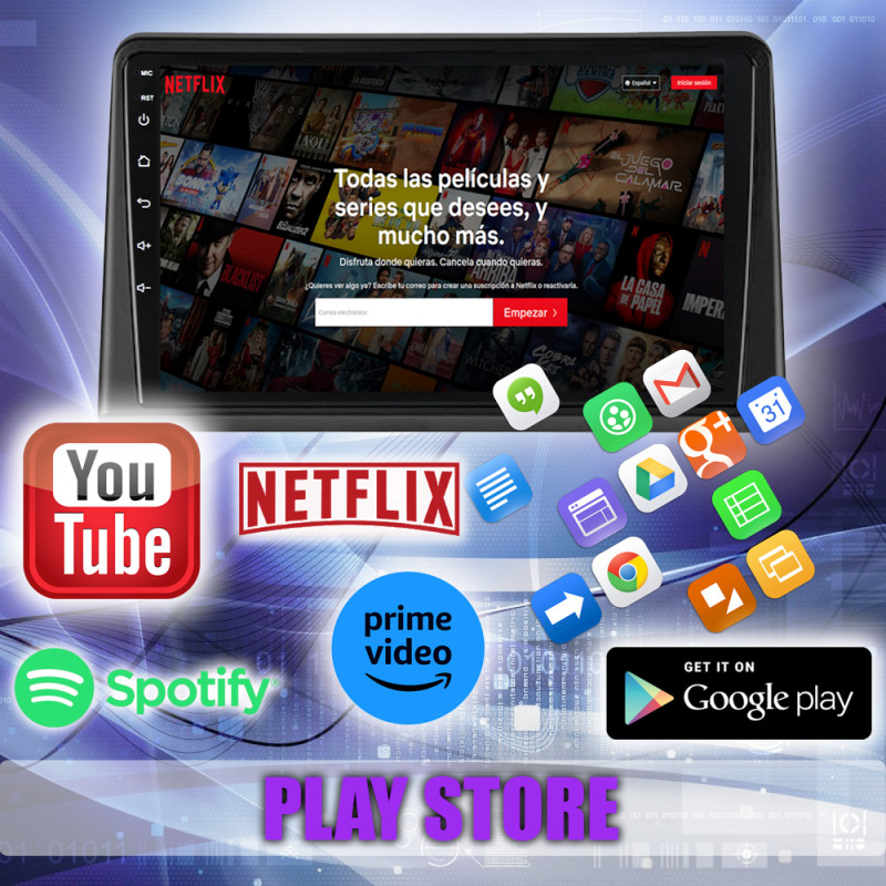 Google Play Store, YouTube, Netflix, Prime Video, TomTom, Spotify, YT Music, Google Maps, Facebook, entre muchas más.