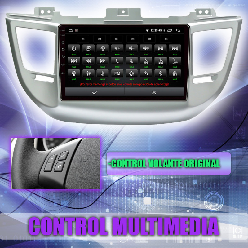Soporta comunicación mandos del volante, permitiendo controlar desde la pantalla los mandos del volante del Hyundai Tucson.