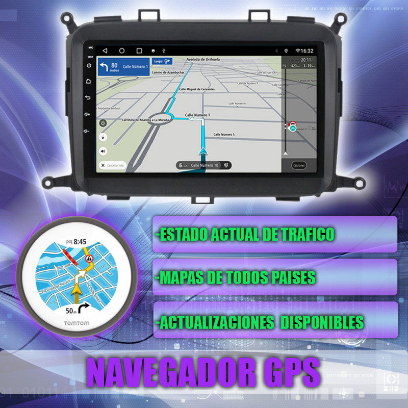 Memoria 2 GB de RAM y 32 GB de almacenamiento interno (ROM) para aplicaciones, mapas y contenido multimedia.