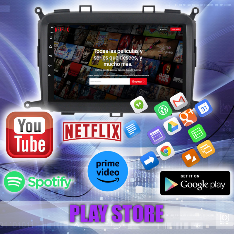 Google Play Store, YouTube, Netflix, Prime Video, TomTom, Spotify, YT Music, Google Maps, Facebook, entre muchas más.