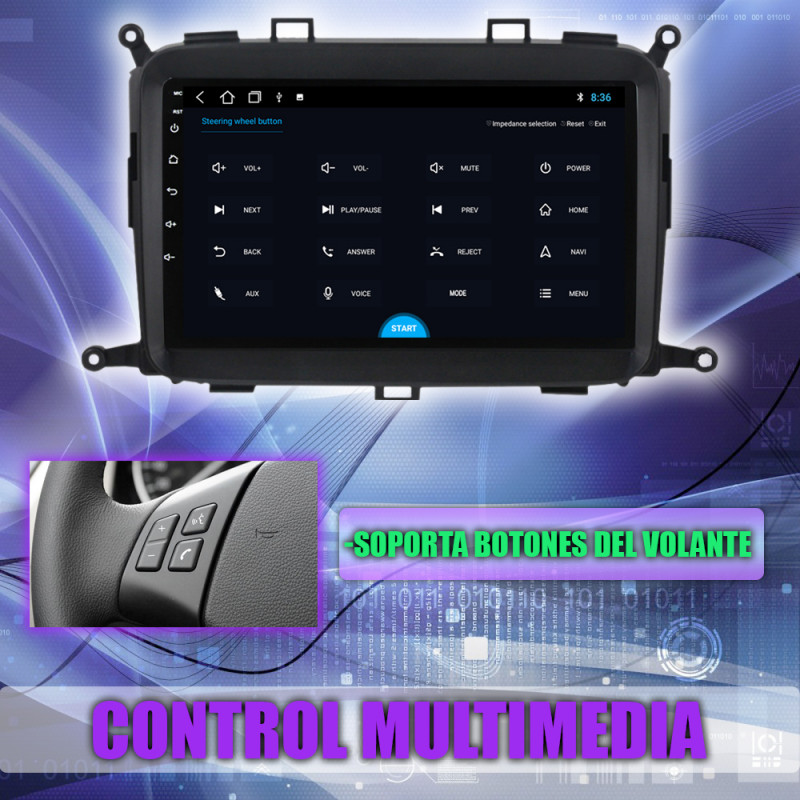 Soporta comunicación CANBUS, permitiendo controlar desde la pantalla los mandos del volante para Kia Carens.