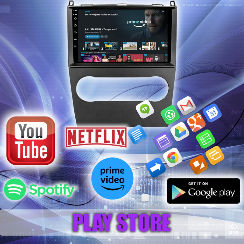 Google Play Store, YouTube, Netflix, Prime Video, TomTom, Spotify, YT Music, Google Maps, Facebook, entre muchas más.