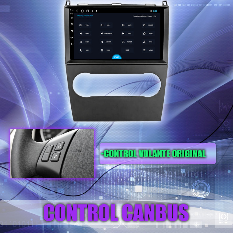 Soporta comunicación CANBUS, permitiendo controlar desde la pantalla los mandos del volante, sensores del coche y ajustes específicos del Mercedes Benz Clase B200 W169 W245.