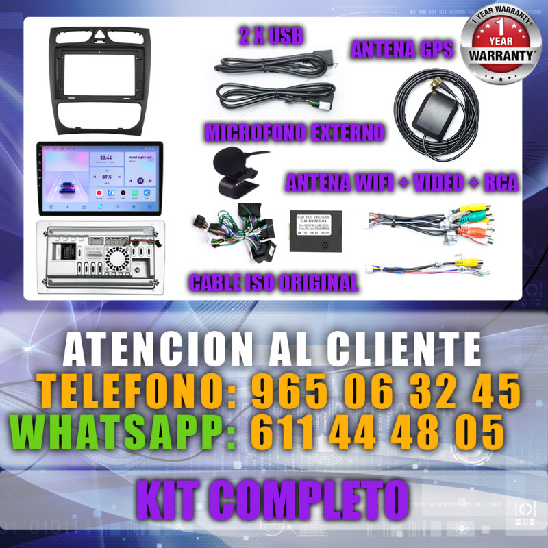PANTALLA GPS MERCEDES BENZ CLASE C W203 CLK W209 1998-2006 9 PULGADAS CARPLAY ANDROIDAUTO TS7