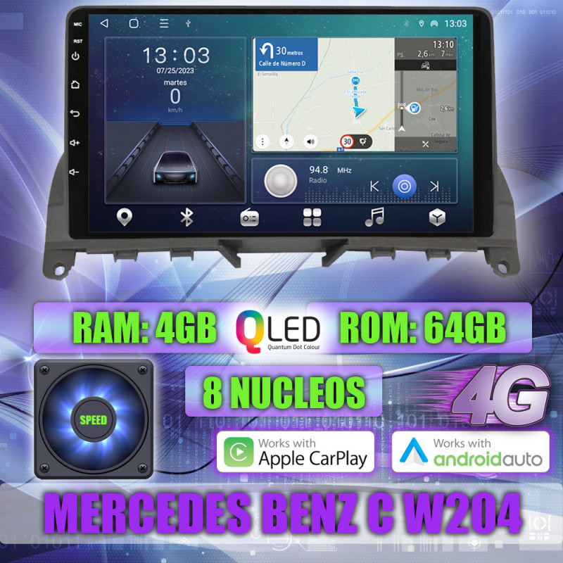 PANTALLA GPS MERCEDES BENZ CLASE C W204 2006-2010 CARPLAY ANDROID AUTO TS18 QLED