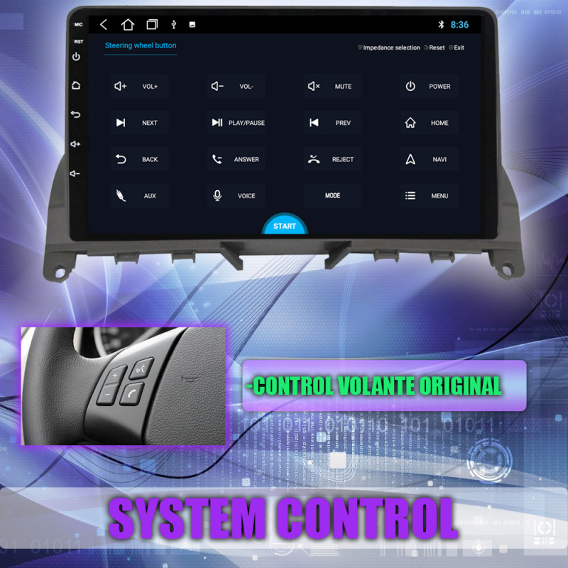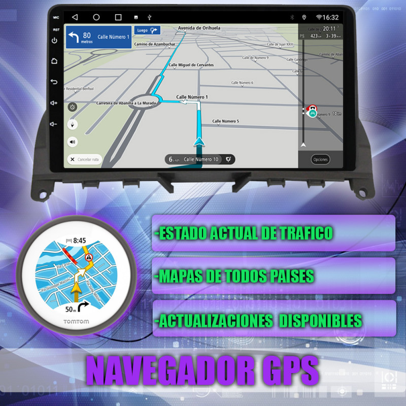 Soporta comunicación CANBUS, permitiendo controlar desde la pantalla los mandos del volante, sensores del coche y ajustes específicos del Mercedes Benz Clase C W204 2006-2010.