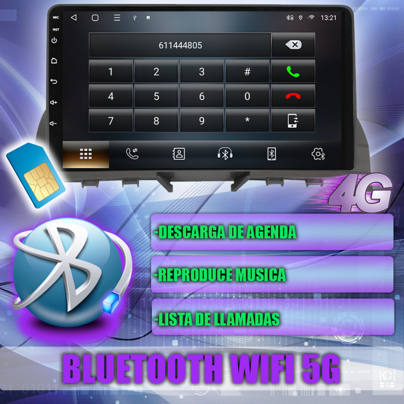 Soporte para tarjeta SIM 4G, permitiendo acceso a internet móvil directamente desde la unidad.