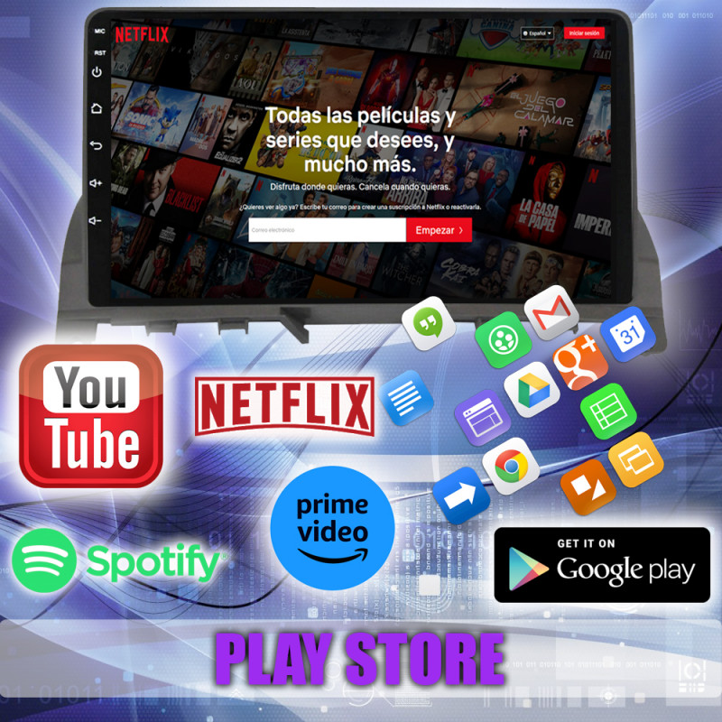 Google Play Store, YouTube, Netflix, Prime Video, TomTom, Spotify, YT Music, Google Maps, Facebook, entre muchas más.