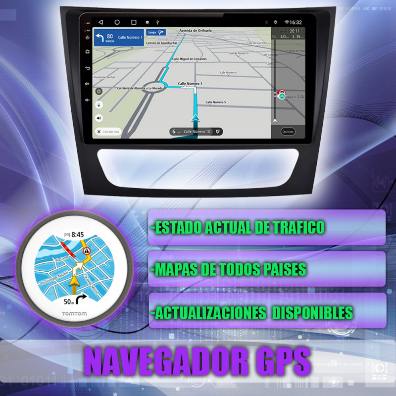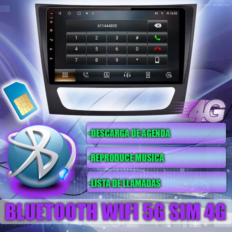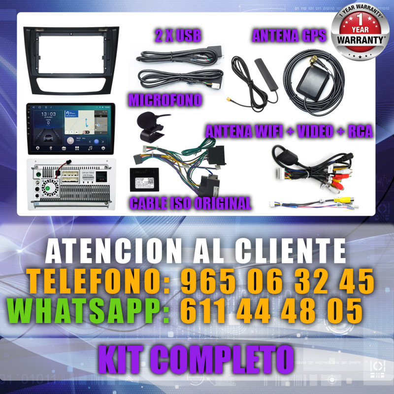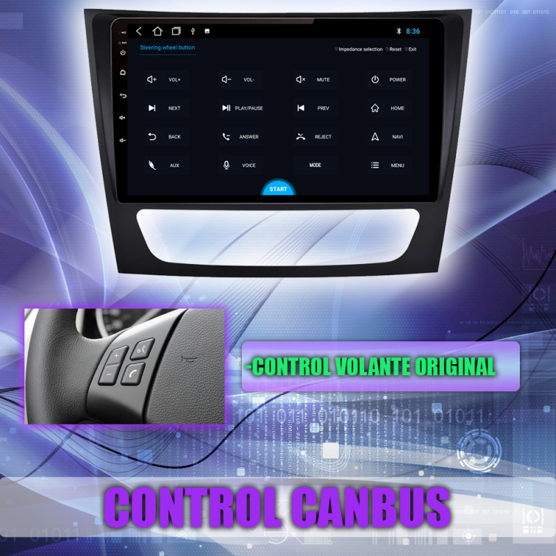 Soporta comunicación CANBUS, permitiendo controlar desde la pantalla los mandos del volante, sensores del coche y ajustes específicos del Mercedes Benz Clase E W211, CLS W219 2004-2011.