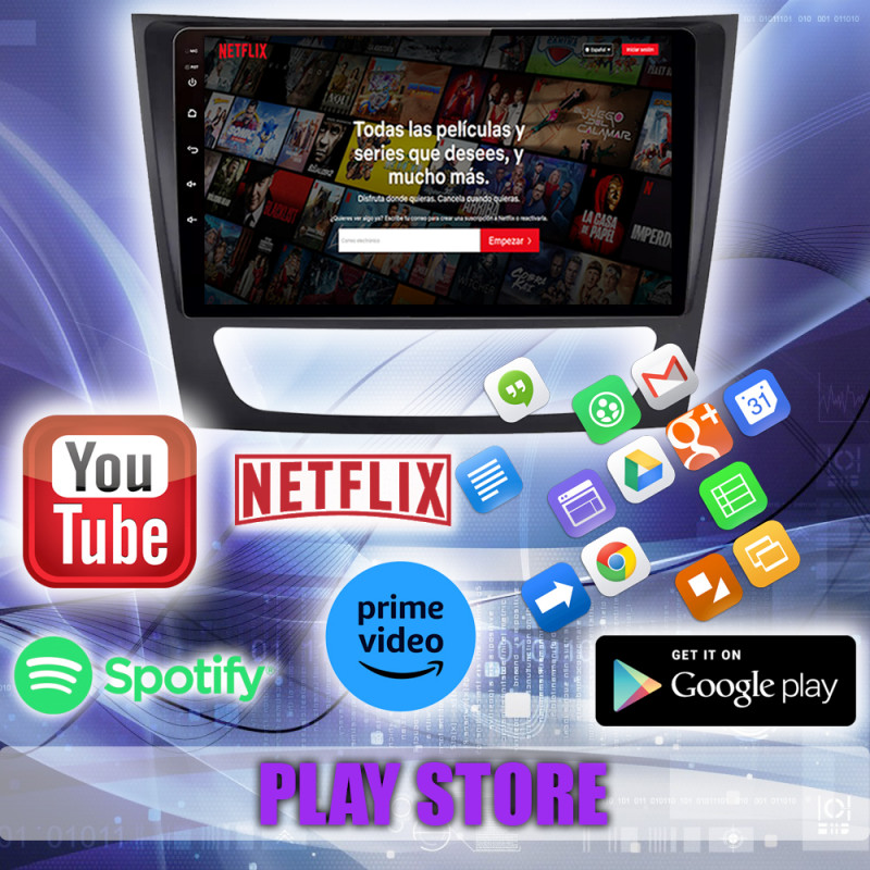 Google Play Store, YouTube, Netflix, Prime Video, TomTom, Spotify, YT Music, Google Maps, Facebook, entre muchas más.