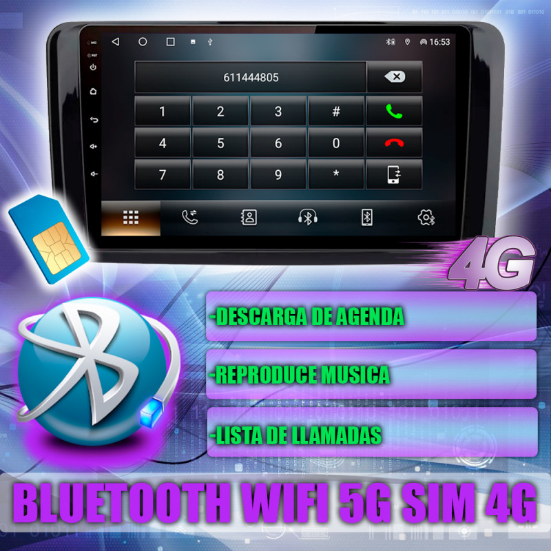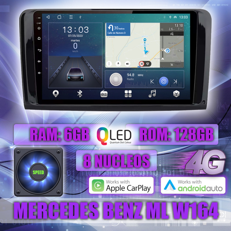 La mejor pantalla que puedes encontrar para Mercedes Benz ML W164 2006-2010 dispositivo HD 2K 720*1280 QLED Multitactil de 9 pulgadas. Mejor diseño del interfase TS18, amplificador de sonido con actualizador DSP integrado. Alto rendimiento gracias al procesador ARM CORTEX-A55 1600MHZ 64BIT de 8 núcleos, memoria de 6GB de RAM, memoria interna 128GB de ROM también acepta memoria externa hasta 128GB. Disfruta de Carplay inalámbrico para dispositivos iOS Apple y Android Auto para móviles con sistema operativo Android. Bluetooh incluido con la versión 5, reproduce música de cualquier tipo de móvil.