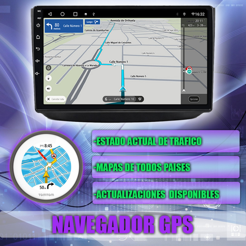 Memoria 2 GB de RAM y 32 GB de almacenamiento interno (ROM) para aplicaciones, mapas y contenido multimedia.
