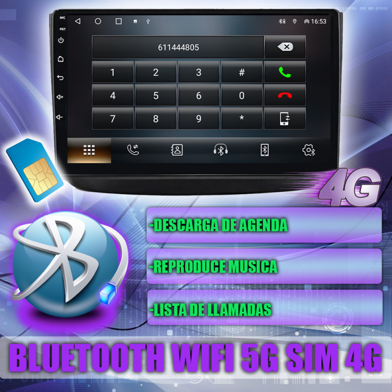 Soporte para tarjeta SIM 4G, permitiendo acceso a internet móvil directamente desde la unidad.