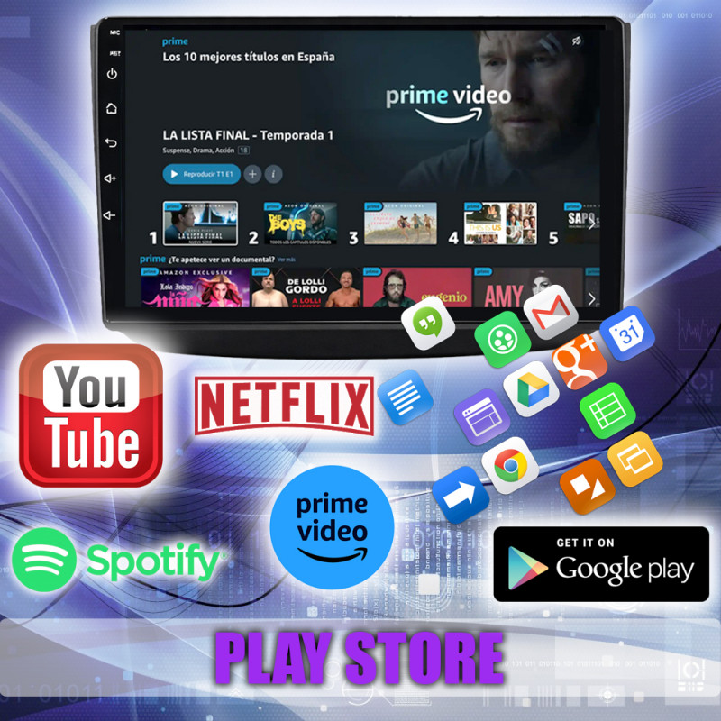 Google Play Store, YouTube, Netflix, Prime Video, TomTom, Spotify, YT Music, Google Maps, Facebook, entre muchas más.