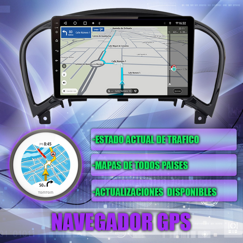 Memoria 2 GB de RAM y 32 GB de almacenamiento interno (ROM) para aplicaciones, mapas y contenido multimedia.