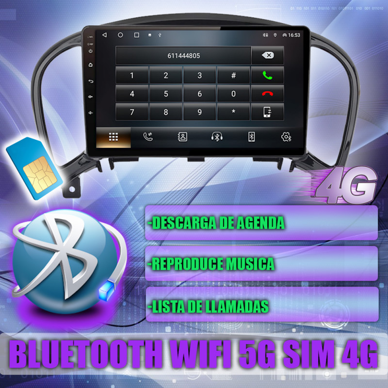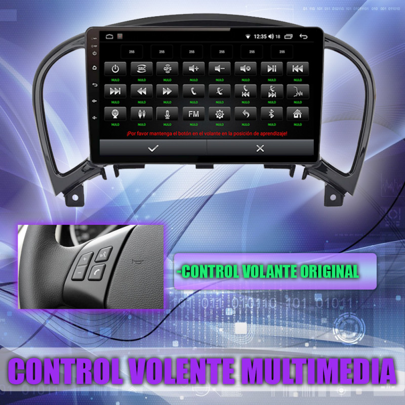 Soporta comunicación con mandos del volante, permitiendo controlar desde la pantalla los mandos del volante en Nissan Juke.