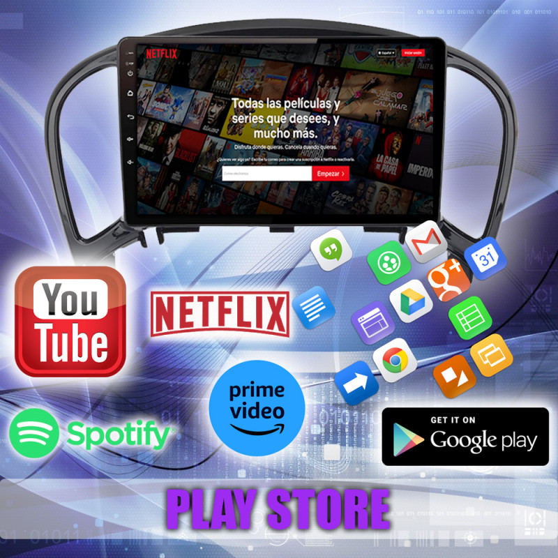 Google Play Store, YouTube, Netflix, Prime Video, TomTom, Spotify, YT Music, Google Maps, Facebook, entre muchas más.
